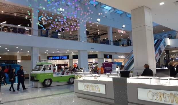 В торговом центре по громкоговорителю сообщается, что при покупке товаров с помощью сервисов Apple Pay и Google Play могут возникнуть трудности. Гражданам рекомендуют расплачиваться банковскими картами или наличными деньгами.